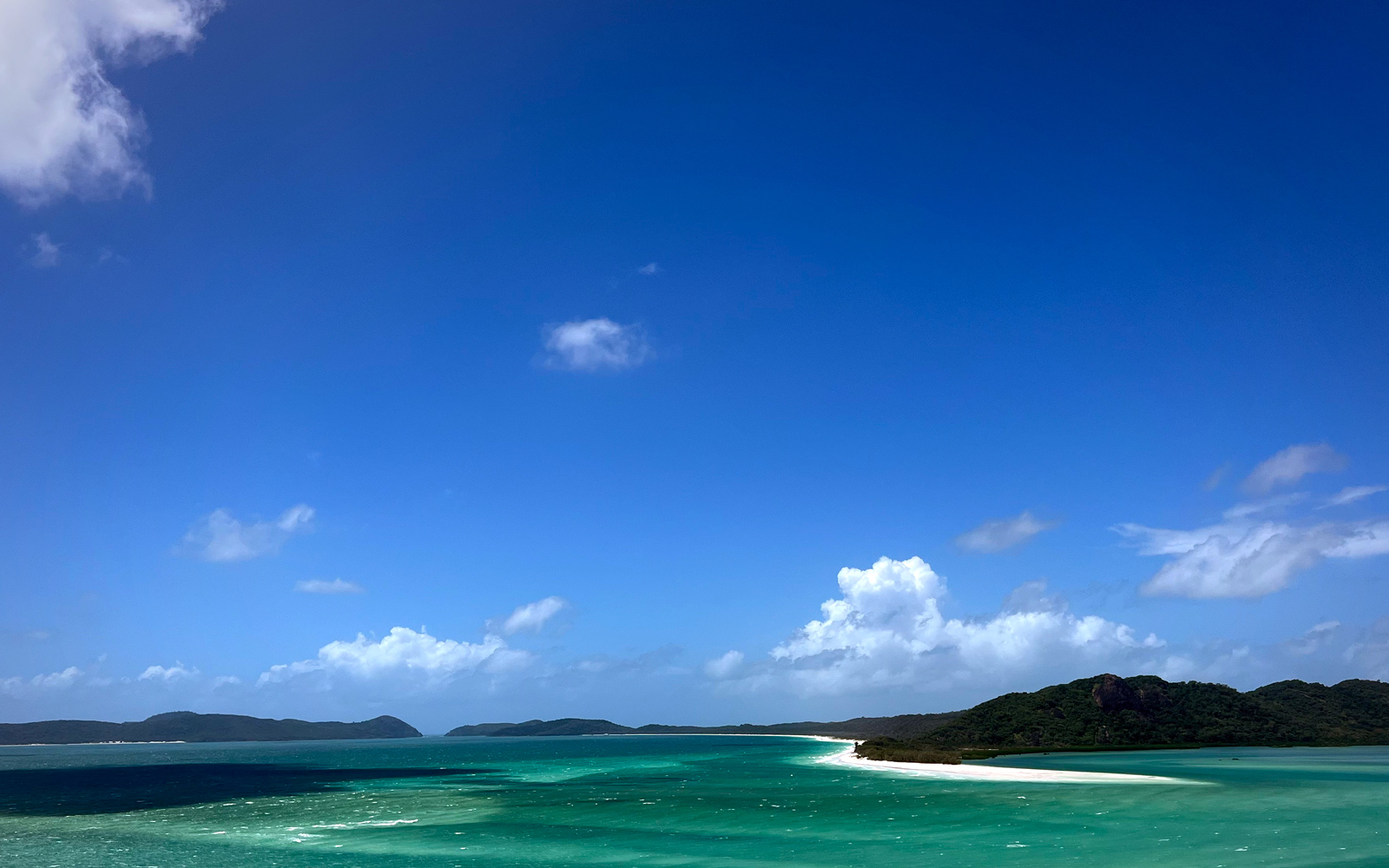 As we slept that night, the ship tracked the first cays, reefs and islands of the Great Barrier Reef. I’ve gone to beg with my balcony doors flung open; as I stir, the fragrant, humid air hits, as does the stillness. Ship at anchor, we’re circled by deep green peaks and calm waters cerulean one minute, jade the next. The Whitsundays’ unmistakable beauty >>. I’m booked on a small group trip today, a fast, salt-stung RIB ride to Whitehaven Beach, a strip of sand so lovely it’s regularly named the world’s most beautiful. Gear stowed, our local larrikan hosts introduced, we slap across the waves, Fleetwood Mac and Elton John blasting over the engine’s roar. By the time Whitsunday Island appears, we’re exhilarated, soaked to the skin, all definitely guilty of singing along. Ashore, a hoop pine canopy shades our path up to Hill Inlet lookout, where the island’s famed swirl of turquoise water and silica-white sand draws sighs all round as we emerge from the bush. Next up, Whitehaven’s southern shore, where we picnic on the exquisitely soft, uncannily cool silica sand. A giant blue tongue lizard dawdles out from our bush backdrop, sniffs the breeze, then scoots away. A few of us don stinger suits to swim, a necessary precaution during the summer months. As we bob in the balmy shallows, a couple from Leeds wonder out load if their next shore excursion, an outback station tour from Townsville, will top this. We all doubt it will, and no one wants to leave. Back at Shute Harbour though, when I spot the Norwegian flag flying proudly over our idling tender, it feels like coming home.