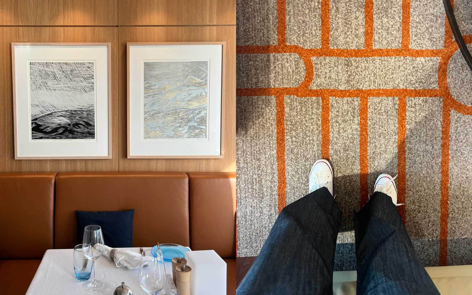 From my stateroom’s wool throw and leather door handles to the reindeer skins tumbling over each Explorers’ Lounge sofa, every design decision on board feels cohesive, authentic. The Wintergarden’s larch lattice ceiling, even the scent of chamomile and tweets of birdsong in the ladies’ room, are transporting, evocative. The Nordic element at work is, of course, no mere aesthetic. Viking’s founder, Torstein Hagen, is Norwegian, a heritage that’s foundational. This morning, the vast expanses of glass before me in the Explorers’ Lounge, a 270-degree sweep, brings to mind friluftsliv – a Henrik Ibsen-coined term that hints at nature’s transformative power. Later, after a fish BBQ lunch out on deck, I’ve pencilled in nothing but poolside reading and a spot of horizon-gazing. But first, I indulge my Nordic yearning a little longer. I’d already clocked the Edvard Munch etchings in the Living Room, sourced from the Hagen family’s private cache, and the sublime fjordscapes gracing The Restaurant by Astrid Nondal. With the Voyager app’s art guide in hand, I set off to explore the ship’s contemporary Norwegian collection, and what such deep national reverence for the natural world inspires.